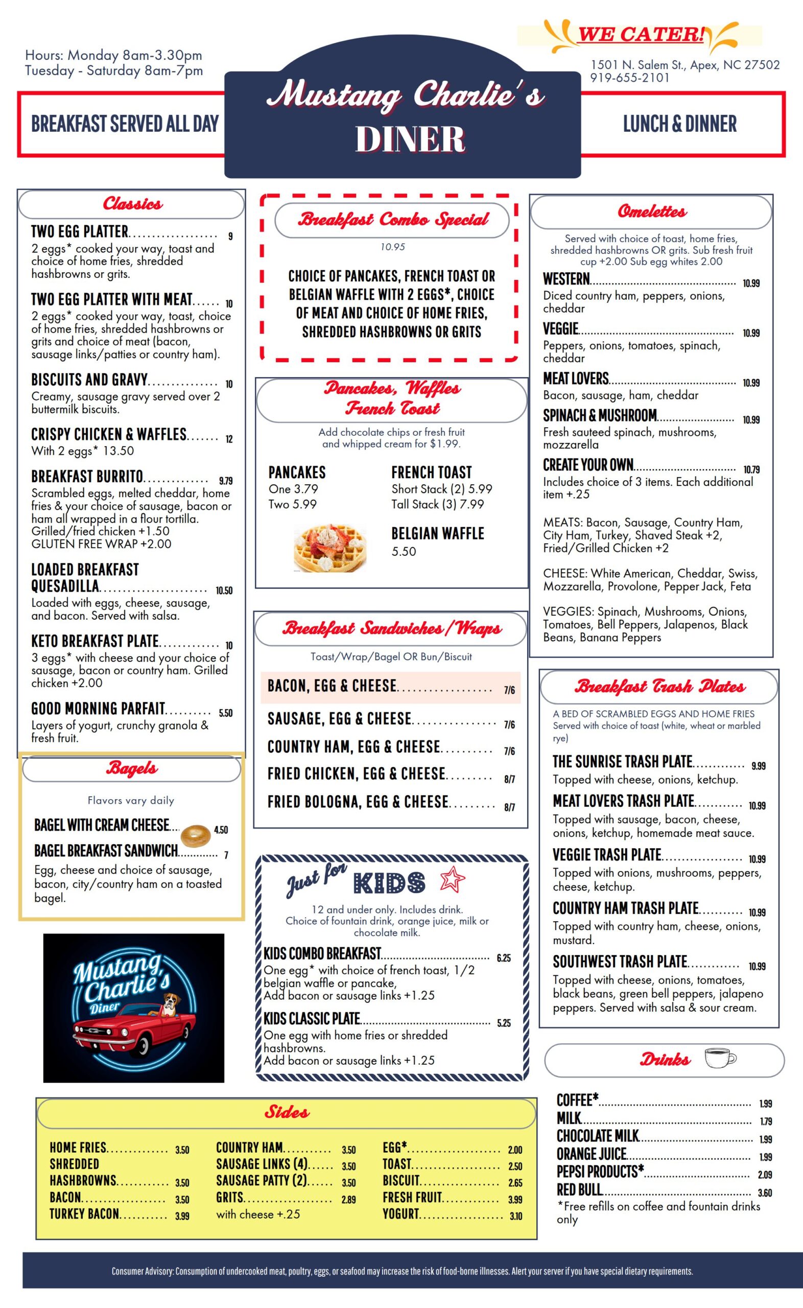 1501 N Salem St, Apex, NC 27502 | Diner: 919-655-2101 | Truck/Catering: 919-337-5137